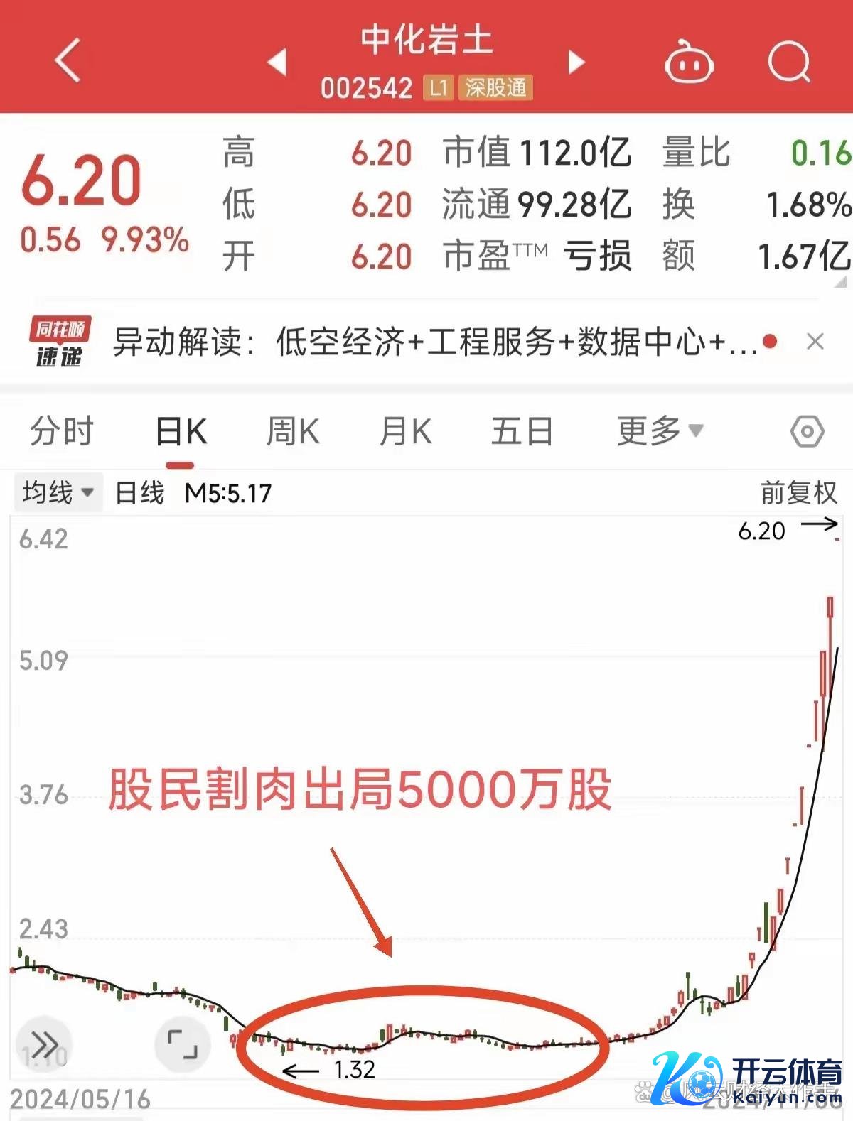 本年7月份的本事股价还在1.3元隔邻,但是当今却拉上6元之上,累计涨幅360%,股民总计没念念到中化岩土不错这样猛,致使在股价创下新低的本事还有许多东谈主割肉出局。