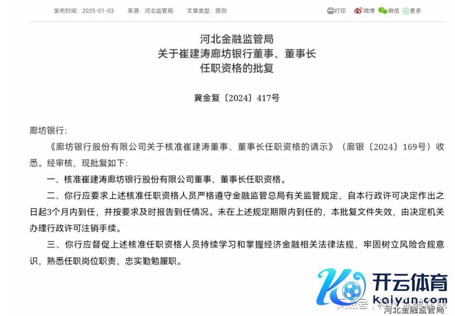 廊坊银行董事长邵丽萍曾被业界誉为最好意思银行董事长欧洲杯体育,左证监管部门批复看法泄漏,年前终末一天,其仍是卸任廊坊银行董事长一职。1月3日,金融监管总局河北监管局核准了崔建涛廊坊银行股份有限公司董事、董事长任职经验。