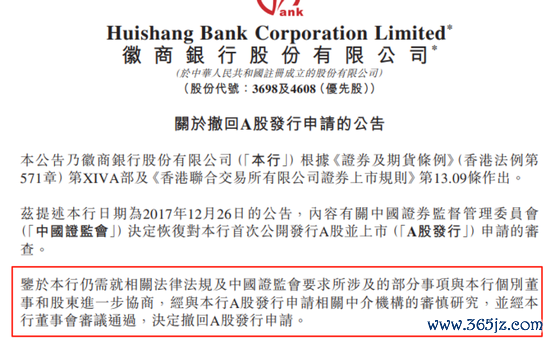 2018年2月,徽商银行发布了裁撤A股上市苦求的公告,提到监管部门条款所触及的部分事项需要与个东谈主董事和激动进一步协商,决定裁撤A股上市苦求。