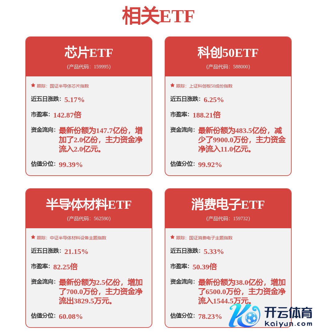 9月24日,三大股指午后执续拉升体育游戏app平台,其中半导体板块大幅高涨。禁止下昼13:10,半导体材料ETF(562590)涨9.99%。运筹帷幄因素股中,长川科技涨20.00%、华海清科涨16.00%、朔方华创涨10.00%,安集科技、中科飞测、芯源微等执续跟涨。